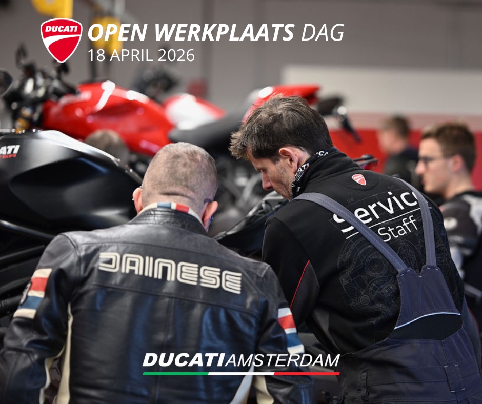 Na de succesvolle Open Werkplaats Dagen in 2024 en 2025 organiseren wij ook in 2026 opnieuw een Open Werkplaats Dag bij Ducati Amsterdam. Op 18 april zetten wij onze deuren open en geven we klanten een unieke kans om een kijkje te nemen achter de schermen van onze werkplaats.