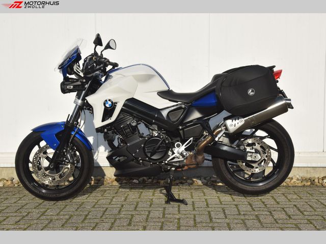 Leuke naked bike van BMW, de F800R. Uitgerust met 2 zijtassen, verstralers, een windschermpje, val- en radiator protectie. Fabrieksopties: