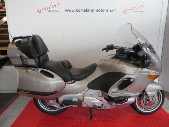 | Beschrijving | K 1200 L(uxus) T(ourer) met elektrisch verstelbare toerruit, zithoogteverstelling, handvatverwarming, BMW Tempomat cruisecontrol, achteruitversnelling, audiosysteem en een geïntegreerde kofferset, waarvan de topkoffer als verstelbare rugsteun voor de duopassagier. |