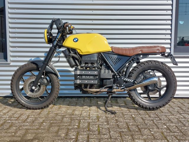 Een trouwe knalpot klant met jaren ervaring heeft dit pareltje helemaal van nul opgebouwd. Wat oorspronkelijk begon als een BMW K 75 RT is nu een zonnige café racer geworden dat vele glimlachen op mensen hun gezicht tovert.
