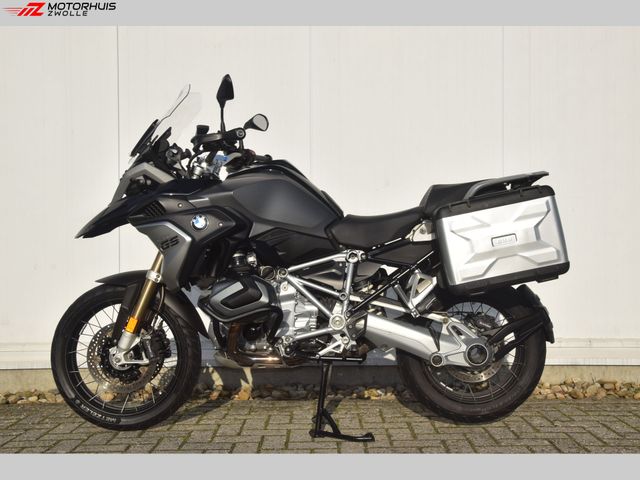 Mooie R1250GS uit 2019 met spaakwielen, zwarte valbeugels, een kofferset en compleet uitgerust met de volgende opties: