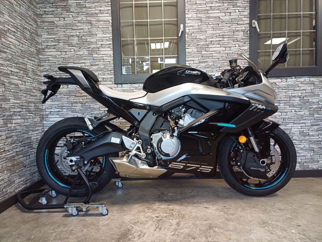 De 130 mm KYB-vering is volledig instelbaar en hij is uitgerust met 300 mm J-Juan schijfremmen met 4 zuigers voor en 240 mm achter. De banden zijn CST S3 120/70 R17 en 180/55 R17.