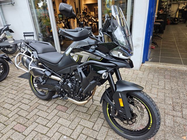 De 800MT Explore, de meest compleet uitgeruste versie van de 800MT serie, heeft dezelfde kenmerken als de Touring, maar met nog meer off-road uitrusting om je overal mee naar toe te nemen. Motorsteun, middenstandaard, handbeschermers, verwarmd zadel en handvatten en een 8-inch Carplay-compatibel scherm maken dit een comfortabele en gemakkelijke motorfiets. Tractiecontrole, bi-directionele shifter, uitschakelbare ABS, 4 rijmodi, dodehoekradar en Michelin Anakee banden maken hem onmisbaar voor off-road avonturen in alle veiligheid. De CFMOTO 800MT Explore brengt je naar het einde van de wereld.