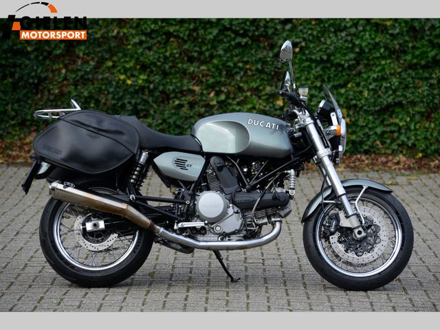 Met lederen Ducati tassen en Termignoni uitlaten.
