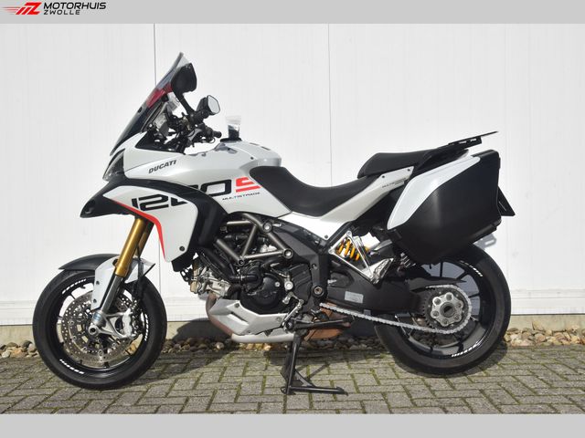 Multistrada 1200 S, dus met electronische Öhlins vering en lichtere wielen dan standaard. Voorzien van Touring pakket (Koffers, middenbok, handvat verwarming)