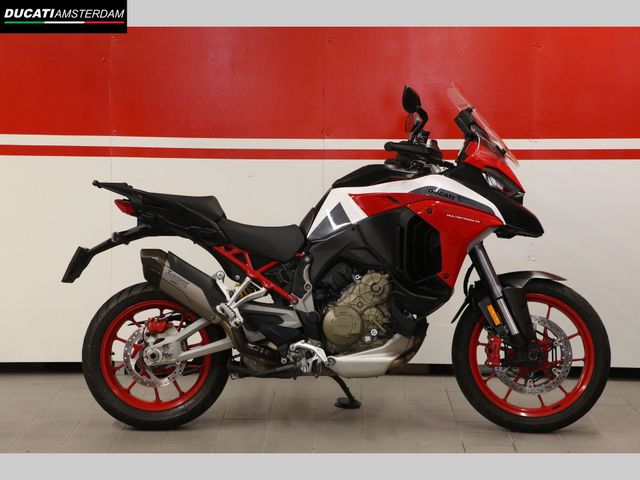 Multistrada V4 S RADAR in mooie staat met o.a. goedgekeurde Akrapovic uitlaatdemper, rood gespoten wielen + remklauwen en carbon voorspatbord.