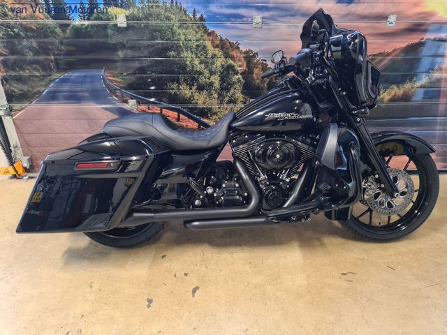 Deze Street Glide is wel heel compleet uitgevoerd. De motor heeft een vol treu dual uitlaatsyteem waardoor er een prachtig donker geluid in de motor zit.