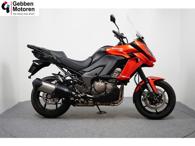 Een in nieuwstaat verkerende Kawasaki Versys 1000 ABS met een middenbok, verhoogd Givi windscherm en uitgerust met ABS.