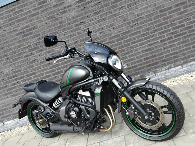 Voorzien van Het Café windscherm deze Kawasaki Vulcan S met ABS. Deze Kawasaki is gemaakt voor perfecte passing met zijn of haar bestuurder, door de ergonomie voetstep fittingen kunnen de voetsteppen op 3 verschillende afstanden gemonteerd worden om de bestuurder nog meer comfort te kunnen geven tijdens het toeren over de dijken. Met net 10.000 KM gereden is deze Kawasaki Vulcan-S klaar voor het nieuwe motor seizoen!