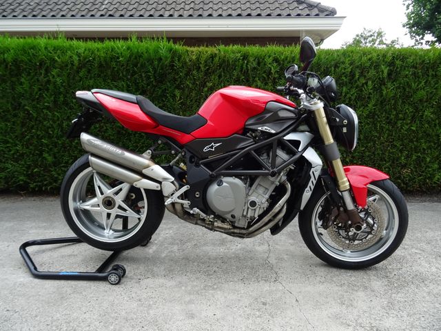 De Brutale is opgebouwd met mooie accessoires. Zo is hij voorzien van een Arrow Uitlaatbochten set waarbij de catalisator is vervallen. Hierdoor zit er een mooi en donker geluid in en heeft hij net wat meer vermogen. Op deze set zitten gewoon de originele dempers gemonteerd, dus het is niet zo dat er mega veel geluid uit komt. Gewoon mooi en beschaaft. Verder heeft hij een Rizoma kentekenplaat houder, Rizoma led knipperlichten rondom, Race uitlaat steun, Carbon topkuip deeltjes en een Altara zadel. Dus gewoon een hele mooie Brutale 750! Fabriek af is de motor opgebouwd met prachtige onderdelen, zoals een Sachs instelbare achter schokbreker, Dikke Marzocchi instelbare voorvork, Nissin remmerij, Prachtige design wielen en een Hele Mooie enkel zeidige achterbrug wat de MV helemaal afmaakt. De motor word afgeleverd incl. reserve sleutel en duo voetsteunen. De MV rijd geweldig, zeker in combinatie met de Arrow uitlaatbochten set is het gewoon een fun bike eerste klas en dat natuurlijk met het Italiaanse schone. Het is een prachtige motor met strakke lijnen, voor in de zomer een heerlijke fiets om mee te rijden voor de winter een mooie decoratie in de woonkamer,