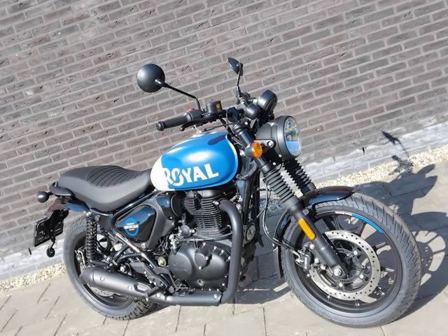 De royal enfield HNTR 350 1 cilinder in de kleur Rebel Blue nu in de showroom. Nieuw, rijklaar met 36 maanden garantie voor € 5799,- benieuwd hoe deze mooie 1 cilinder rijd? kom dan gerust aan voor een proefrit op onze demo en laat je verassen!.