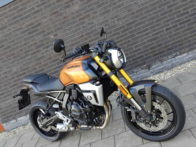 De Suzuki GSX-8T is een opvallende verschijning in het Street-segment. De ronde LED-koplamp, geïnspireerd op Suzuki-motorfietsen uit de jaren 60 en 70, is voorzien van geïntegreerde contourverlichting. Karaktervol design met een moderne twist: de iconische 16,5-liter tank, goudkleurige voorvork en luxe afwerking maken het plaatje compleet: met deze motor val je op.