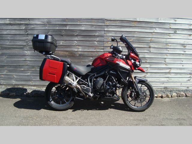 voorzien van triumph zijkoffers, Givi topkoffer.